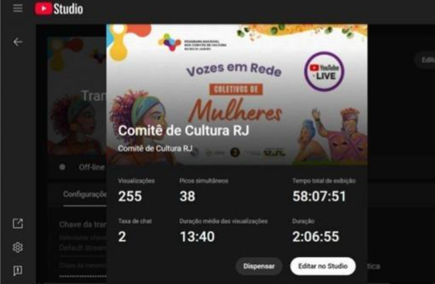 O evento alcançou 255 visualizações e 35 participantes simultâneos, com grande interação do público por meio de comentários e reações. Diante do sucesso, ficou definida a produção de um curta-metragem para documentar as trajetórias dos coletivos participantes.